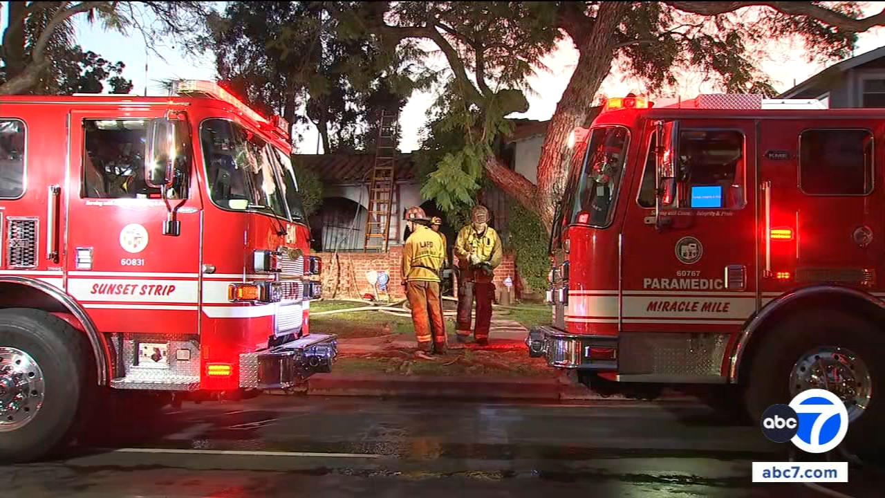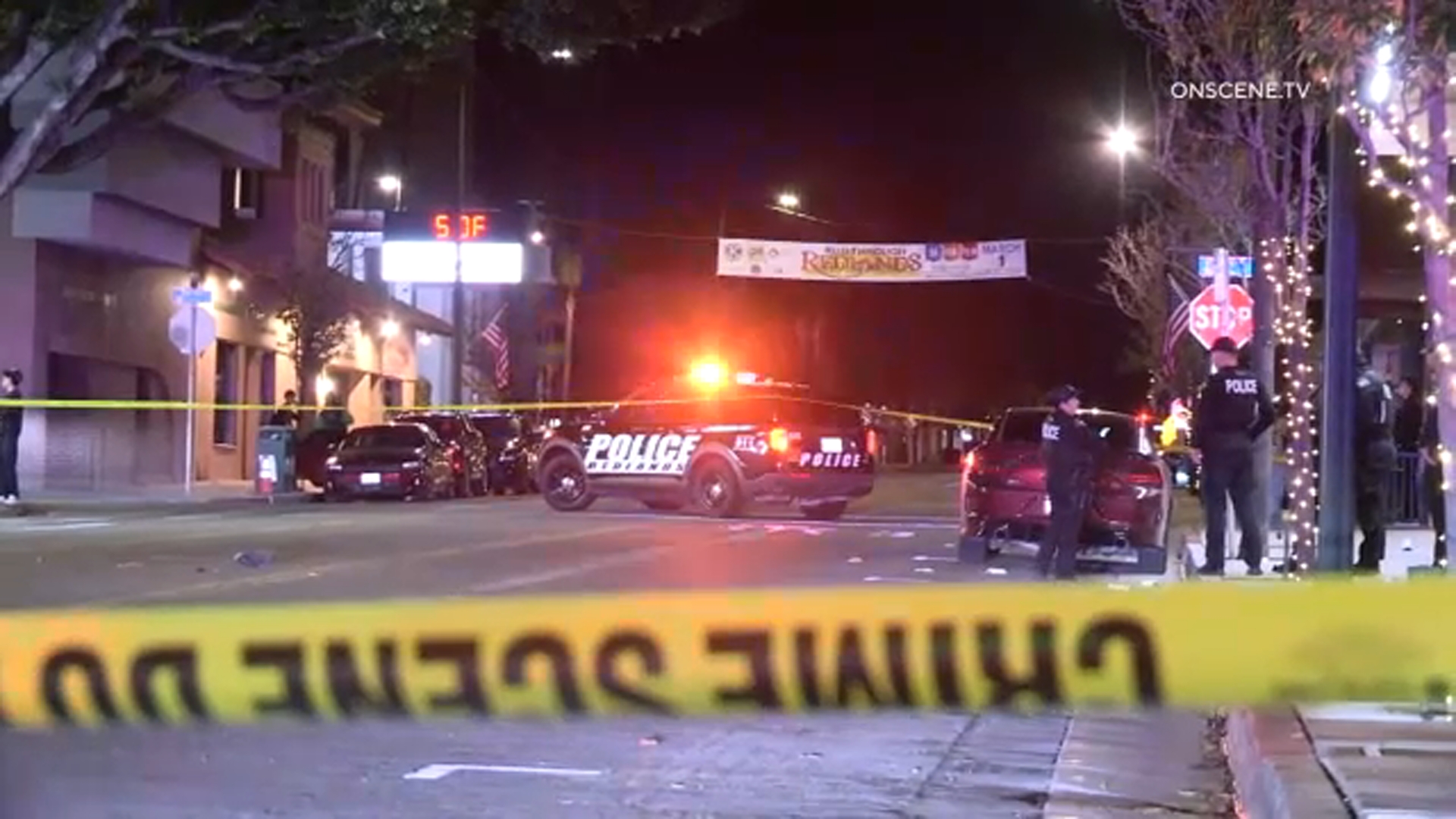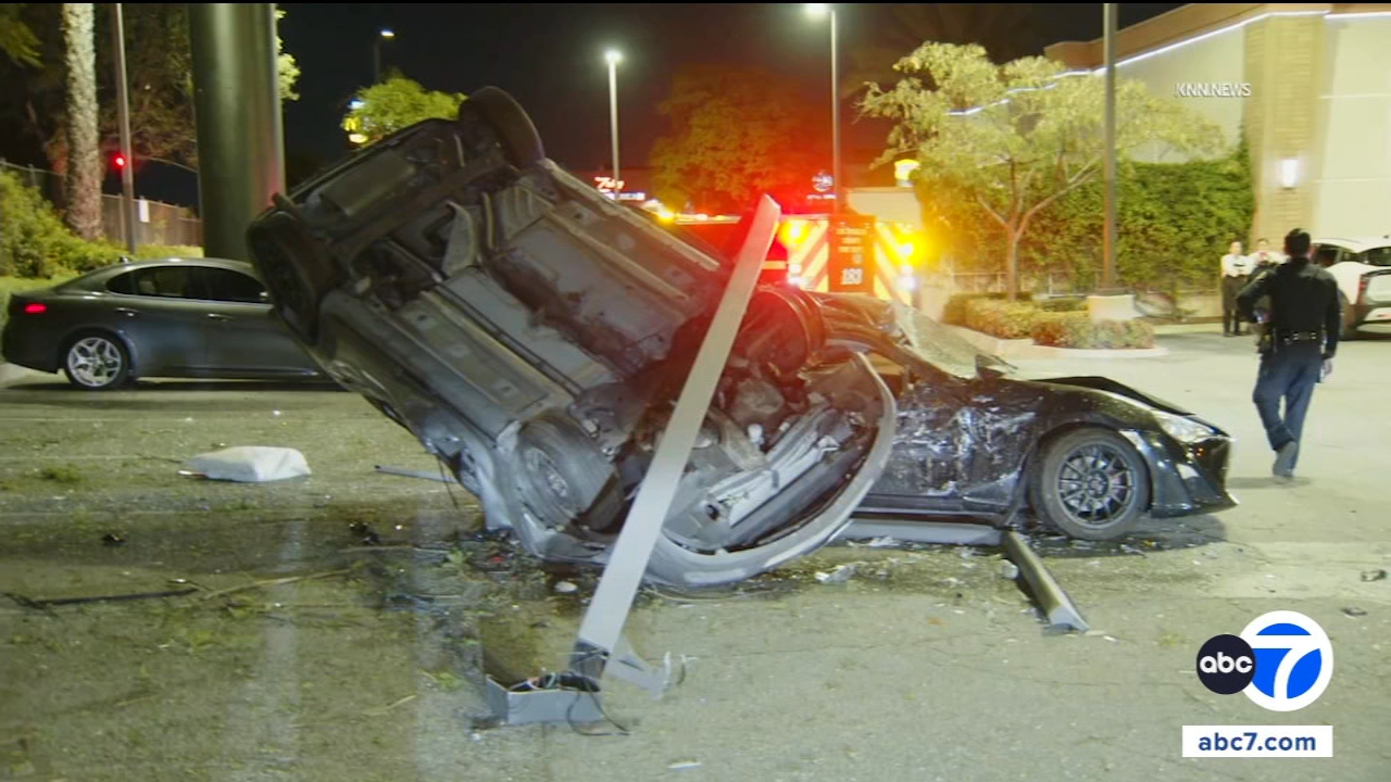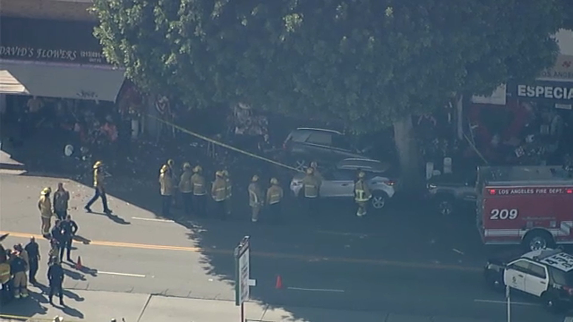 A car crashed into four people on the sidewalk and then a tree in downtown Los Angeles Tuesday.